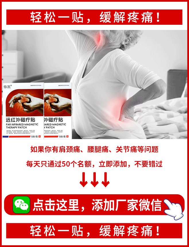 修凯远红外磁疗贴,经过了无数次的临床试验,且通过了权威检测,医疗器械认证,品质保障用着放心!非常适合颈椎病、肩周炎、腰肌劳损、腰椎间盘突出、软组织损伤、骨关节炎、痛风、肌纤维炎等人群使用。